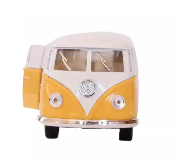 VW Kombi Nacional 1962 Kinsmart 1:32 Amarelo Reviva a história do icônico carro brasileiro com esta miniatura detalhada da VW Kombi Nacional 1962 na escala 1:32. Produzida pela Kinsmart, esta réplica é feita de metal e plástico, conferindo resistência e acabamento realista.